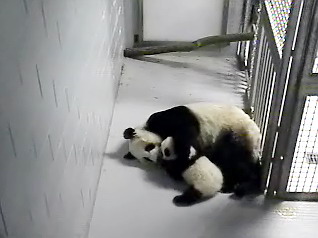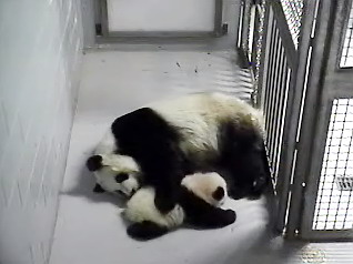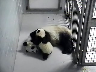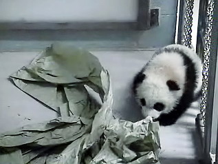 к семейству панд просто феноменальна: медвежонка стали показывать публике только когда он