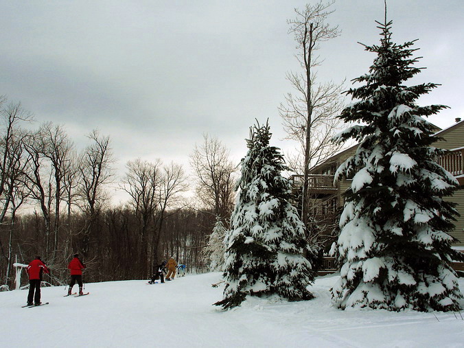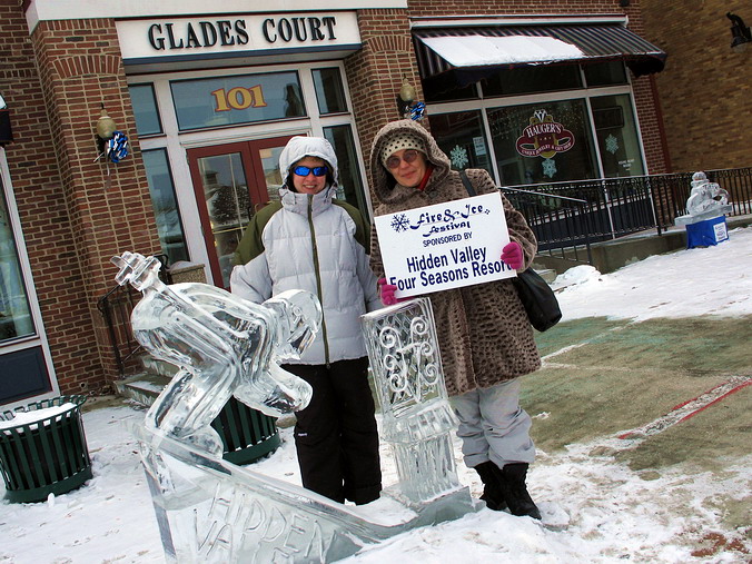 Подъёмников и спусков и сейчас предостаточно на любой вкус (на наш уж точно), но и планов по развитию тоже – громадьё, желаем им успеха. Кстати, можно в реальном времени и даже в интерактивном режиме посмотреть, что там творится на горе: WebCam1, WebCam2 или прямо с их сайта. Hidden Valley расположен в районе Laurel Highlands Пенсильвании, так что на природу и исторические места там не хватит отпуска – только выбирай: www.LaurelHighlands.org. Можно остановиться и на самом курорте Hidden Valley, но в 15 минутах находится город Somerset, интересный и сам по себе, а уж гостиниц там и не перечесть. Нас милостиво приютил отель Quality Inn & Conference Center – никаких нареканий. А в Сомерсете удачно попали на ежегодный фестиваль «Лёд и пламя»: на центральных улицах города установлено множество красивых фигур изо льда и даже горят культурные костры, что было очень кстати: мороз стоял аж –15°!.. Знаете, а в этом что-то есть: иногда встряхнуться, сломать накатанный "распорядок" вещей, бросить привычный быт и телевизор, заказать где-то номер в гостинице с субботы на воскресенье и… “На два дня, на два дня, вы забудьте про меня!..” Если вдуматься, то хорошие гостиницы сейчас есть везде, ну и что мешает махнуть куда-нибудь, не знаю, ну скажем, в Коломну, походить на лыжах, полазить по красивым или историческим местам?.. Наверное, лень и старость, которая тоже, по сути – лень… P.S. Как всегда, для фотоиллюстраций имеется магическая кнопка – «Click for Pictures»…