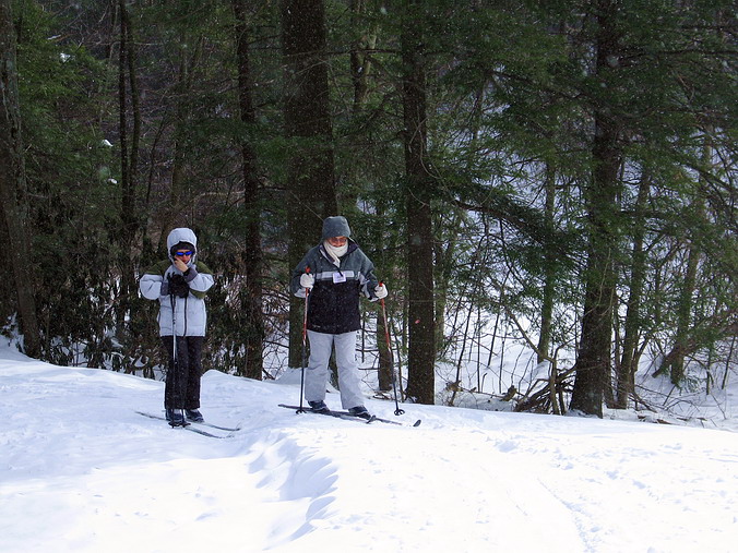 Нам поздновато рваться “из сил и из всех сухожилий” (В.Высоцкому – 70 лет…), так что главными приоритетами в нашей горнолыжной затее являются наслаждение самим процессом и безопасность. Поэтому рвущимся наружу чувствам (полёта, щенячьего восторга и т.п.) стараемся чрезмерную волю не давать. Планомерный и пропорциональный рост мастерства находится под неусыпным контролем, при этом очень возможно, что мы получаем гораздо большее удовольствие от лыж, чем они (лыжи) – от нас. Ничего, потерпят… Любим также ходить и поперёк страны (cross country) – так затейливо называются наши нормальные советские лыжи, правда, с креплениями, которые и не снились в пору детства и спортивной юности. В процессе неустанного поиска новых мест горнолыжного обитания в прошлые выходные был открыт