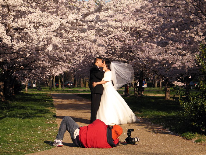 Интересный народ эти американцы: мёдом не корми – дай провести парад. За причиной далеко не ходят, утончённо-духовным натурам вашингтонцев, например, достаточно того факта, что пришла весна и – surprise! – опять вдруг расцвели вишни-сакуры по берегам залива! Ну и как же не отметить такое событие? Не просто отмечают, но и проводят Национальный фестиваль цветения вишни с концертами, выставками, парадами. Не говоря уже о невероятно пёстрых народных массах, праздно прогуливающихся от рассвета да заката среди весенне-природных декораций и жадно впитывающих эту сказочную красоту широко открытыми глазами и объективами фотоаппаратов… Кто-то бежит трусцой навстречу группе "ходоков": “How are you, people?” (Как вы, народ?) - "Народ" ему в ответ: “How are you?!” (А сам-то как?)… – Вот так, вопросом на вопрос, поговорили… К счастью, эта прелестная неожиданность с цветением сакуры случается каждый год, мы её уже кратко касались ранее, а фотоальбом “Cherry Blossom Mania” широко известен в узких кругах. Некоторые свежие фотозарисовки (с парадом!) можно отыскать в прилагающихся картинках. Кроме того, при наличии здорового любопытства, доступного траффика и желания испытать себя американским английским можно посмотреть и профессиональный репортаж о параде Cherry Blossom в Вашингтоне со странички телеканала ABC/News8. Вообщем, как у нас в песнях поётся: созрели вишни в саду у дяди Вани… – веселится и ликует весь народ… Аккурат в эпоху вишнёвого цветения случилась «Женитьба Бальзаминова»: антрепризный спектакль с таким названием доехал и до вашингтонских окраин. Как и обещала афиша Арт Салон Театра, в спектакле приняли участие хорошо известные Лариса Лужина, Елена Проклова, Александр Семчев и, надо признать, играли они на совесть, добротно и профессионально. Более того, неожиданный рисунок роли свахи в исполнении Елены Прокловой, непривычно молодой (для свахи-то!) и роскошной в своём оранжевом платье с эйфелевой башней на шляпке, буквально развернул и весь спектакль к зрителю совершенно новым лицом: очень живым и современным. При этом никакого модернизма, заумного "поиска" и "неожиданных" находок: всё по тексту пьесы. Эта безусловная удача как-то естественно отбила всякое желание сравнивать постановку с известным фильмом, в котором запомнились Вицин, Мордюкова, Смирнова и другие: никакой конкуренции – два самостоятельных произведения. Ну, корифеи в «Женитьбе», понятно – на сцене борозды не испортят, а как прекрасна там была молодёжь!
