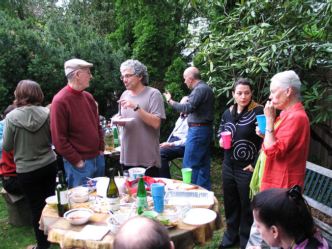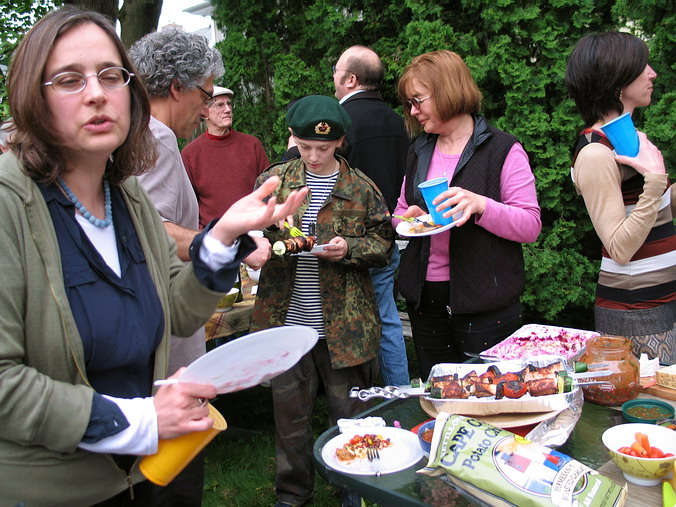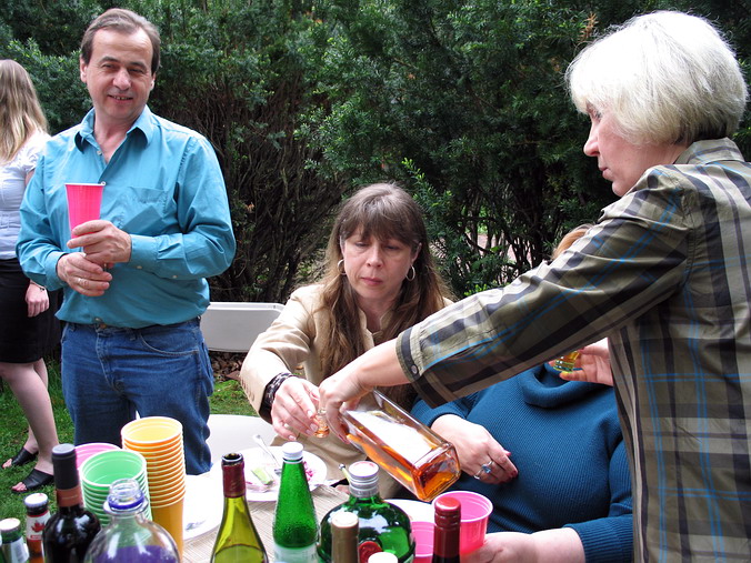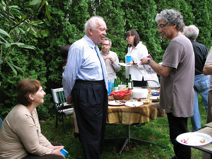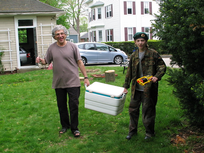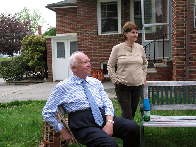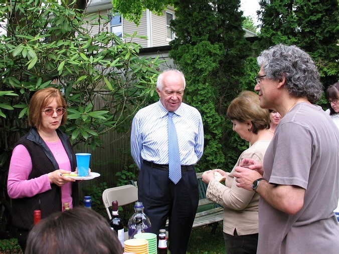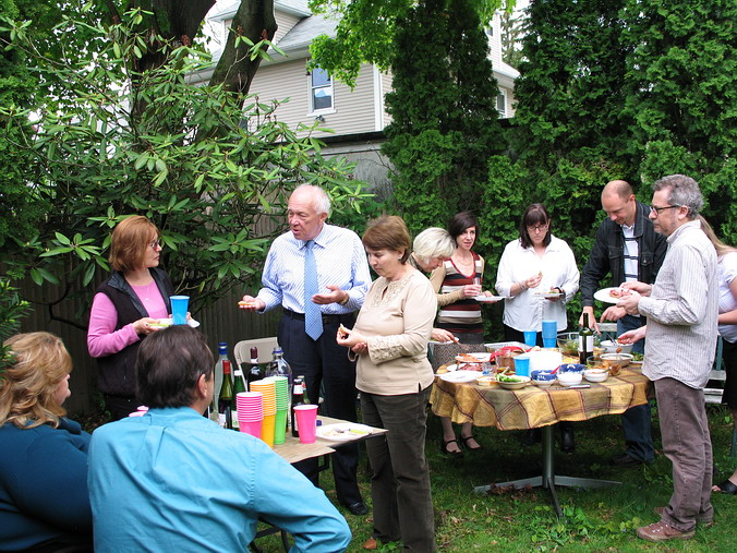 как праздник, а, во-вторых, работает там у нас кое-кто… • Автопробег в ознаменование 9 Мая! – Можно сказать и так, но фактически было ещё затейливее: Володя Гольштейн купил дом и пригласил нас к себе на новоселье, которое он приурочил аккурат к 9 мая. Практически без колебаний, благо накладок никаких не предвиделось, и доказывая самим себе собственную лёгкость на подъём, быстро решили: едем! 680 км – от двери до двери – заняли 8 часов, что совсем неплохо, особенно если учесть, что ровно посередине маршрута громоздится "трудно проходимый" Нью-Йорк. А так всё просто: встал на 95-ую – и на север… Володя, на удивление, не изменился вообще. Не по-американски поджар, такой же несуетливо-подвижный и живой, такой же добродушно-приветливый и открытый, с тем же студенческим юмором и оптимизмом, невзирая на разные полосы в жизни. Без преувеличений, чувствовали мы себя там как дома – и этим, собственно, всё и сказано. Сын Федя, как заправский экскурсовод, шустро "протащил" нас по всем домашним достопримечательностям, заведя под самый чердак, и также шустро исчез, не показав дорогу назад (не Сусанин ли?). С искренней радостью и гордостью за однокашника (кадры МИУ!) мы поохали-поахали и подключились к подготовке вечеринки: что это такое – отдельная история, места не хватит. Вкратце, американская вечеринка (party!) очень демократична и свободна: вся инициатива на вас самих, никаких "смен блюд", никто не будет уговаривать вас поесть, наоборот, вы сами будете обходить дозором столы, чтобы подобрать что-то по душе, никто не будет настойчиво предлагать выпить – ты меня уважаешь? – наоборот, вы сами себе нальёте то, что, опять же, вам по душе (душа-то здесь причём?!). Короче, полный "help yourself". Хозяин, как правило, предусматривает всё, но и гости обычно приносят что-то с собой, создавая непредсказуемое разнообразие в еде и напитках. Число "мест для сидения" ограничено, участники всё время в броуновском движении и "клубятся" по интересам. Пьют немного и некрепко, хотя, естественно, всяко бывает. Владимир пригласил какое-то немыслимое количество гостей, пришли не все, но и их было, наверное, человек сорок – не считали. Дело происходило на лужайке позади дома, и народ разными путями просачивался туда до самой ночи. Звучала русская, американо-английская, итальянская и французская (Федя во французской школе) речь. Короче, полный Интернационал. А первый тост был за Победу – и никто из них не спрашивал, что да как – все в курсе. С кем-то мы, наверное, даже и не познакомились (всё равно не упомнишь), а с кем-то – очень близко. – Здравствуйте, - сказал очередной гость, протягивая руку. – Саша, - скромно представился я. – Серёжа, - с улыбкой прозвучало в ответ. Это был Сергей Никитич Хрущёв: как и Володя, он работает в Университете Брауна (Brown.edu, Wiki) в Провиденсе и занимается международными отношениями. Интереснейший собеседник, о чём мы только с ним не разговаривали в тот вечер (есть относительно давнее, но оттого не менее интересное интервью с С.Н.Хрущёвым). А потом были профессиональные шашлыки с непременным вином до и после, чаи с тортами, выпроваживание подзасидевшихся