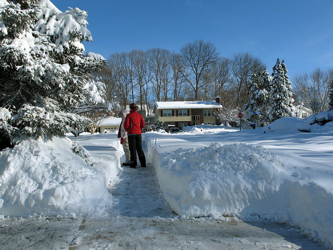 Порадовали местные энтузиасты с ручными мотомашинами для уборки снега: они буквально "вгрызались в породу", проход за проходом прорубая на локальной дороге полосу для движения автомобилей к ближайшей автотрассе, где уже большая снегоуборочная техника пыталась изобразить бурную активность, так сказать, to make a difference… Конечно, этой техники не хватало, экономически не вытанцовывается: кто и где будет круглый год "пасти" этих снегоуборочных монстров, когда они нужны-то две-три недели в году? Так что их количество сведено к минимуму, а на заснеженную арену выступают "частники" – тот самый пресловутый малый бизнес, легко переоборудуя свои грузовички под зимний вариант оснастки. Бывают и восьмицилиндровые "любители", но это для здешних краёв – перебор, конечно… Тема глобального потепления (или отсутствия оного) уже слегка набила оскомину, тем веселее обменялись мнениями