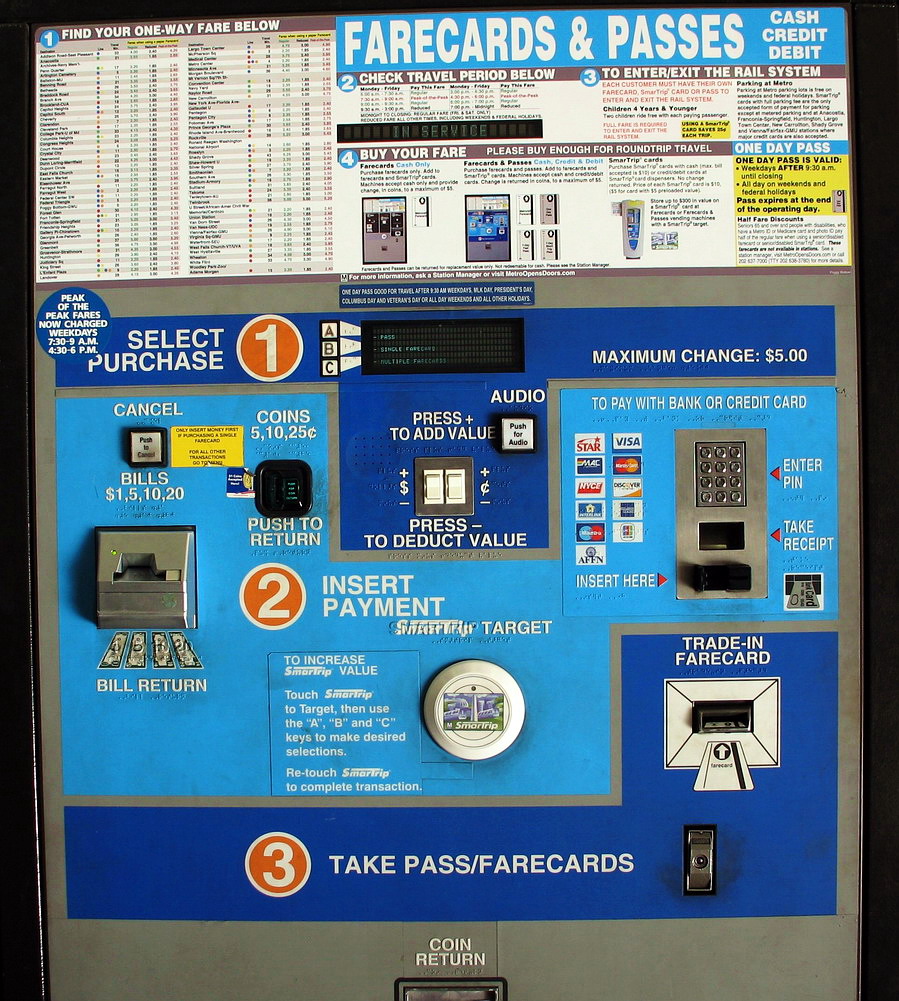 Одной из основных задач при разработке любого компьютерного обеспечения является создание простого и интуитивно понятного пользовательского интерфейса. Знамо дело, этот "юзер" пресловутый, как показывает опыт, не только ленив (нет бы прочитать инструкцию всего-то в 65 страниц!), но и ещё, местами, тормозит по полной программе. Не пугайтесь, речь идёт не о высоких технологиях, а о том, что Вашингтон – это столица туристическая, и сюда слетается-съезжается множество самого разночинного люда, включая и американцев со всех концов США. Опять же, Вашингтон – город относительно небольшой, но метро в нём, к счастью, есть: многие тысячи пассажиров ежедневно добраются им на работу. Но речь не о них, использующих разного рода постоянные проездные, а о тех несчастных, кому нужно купить билет, особенно если сделать это предстоит впервые. Так вот, людей-кассиров нет: "платочки в руках теребя", вас встречает скромно стоящий в сторонке вдоль стены целый ряд вот таких красавцев… По идее, всё должно быть просто, как “Раз - два - три!”: именно эти шаги и прорисованы на фасаде "агрегата"… Оставим в мирном покое тех, кто с английским на "вы", в смысле, ни бум-бум: они порою ещё более изобретательны в достижении результата. Но каким восторженным удивлением и незамутнённым любопытством искрятся ясные взоры вновь прибывших "гостей столицы", постигающих эту метро-камасутру… Куда-что вставлять, какие кнопки нажимать, что-откуда забирать?! Регулярно наблюдаю эту замечательную картину при входе-выходе из метро. Правда, шутки тут особо не уместны, так как вашингтонские метро-гении постарались от души на ниве поражения в правах тех, что посмели считать себя сообразительными. С некоего бодуна, стоимость поезки в здешней "подземке" неодинакова и зависит от расстояния. Кроме того, она меняется в зависимости от времени суток, а в часы "пик" – ещё и дополнительная "надбавка". А вместо того, чтобы просто спросить, какова станция назначения, и выдать текущую стоимость билета, они предлагают несчастному пассажиру самому продраться сквозь кучу таблиц с поправками и сносками, вычислить заветное число и оплатить его в долларах. Конечно, возможны и ошибки – ничего страшного, скажут вам. Заплатили больше – неиспользованные деньги останутся на карточке-билете (зачем?), а если меньше, то придётся доплатить, ещё разок пообщавшись с подобным красавцем-агрегатом но уже внутри станции, то есть ещё до выхода через турникеты. Сказка! Вернувшимся домой усталым и довольным "пионерам" будет что рассказать потом, потягивая пиво у барных стоек в Вайомингах, Айовах и Дакотах… Эксплуатируя отечественную изворотливость ума, одно время я удачно приспособил этот "агрегат" для размена монет, чтобы было чем платить за парковку на улице. Но позже, когда, по-видимому, таких "считающих себя сообразительными" оказалось слишком много, эту лазейку прикрыли: сдачу ограничили и стали вдруг давать долларовыми монетами, причём "золотыми". Да и за парковку стало возможным платить по мобильному телефону. Кстати, когда "в силу кризиса" городу стало трудно с деньгами, они, не мудрствуя лукаво, – что мелочиться-то? – просто взяли да и удвоили плату за уличную парковку. Теперь это одна из претензий к нынешнему мэру на предстоящих выборах. Отвлёкся… К билетным автоматам периодически обращаюсь и я, чтобы "подкормить" с