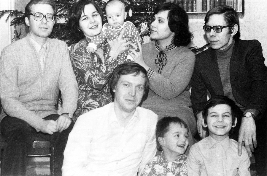 С Новым 1983-ым годом! Серёжа Сандлер, Тома Варганова, Саша и Саша и Женя Ершовы, Света и Саша и Алёша Чесалины. Декабрь